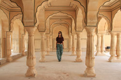 Nuestro itinerario empezó por el fuerte de Amber, una localidad a unos 11km al norte (30 min desde Jaipur). Es un enorme fuerte situado en lo alto de una colina construido con piedra de tono amarillento a finales del s. XVI para dar cobijo y protección al maharajá Man Singh. Los palacios interiores están distribuidos en 4 patios alrededor de los cuales se encuentran las diferentes estancias. En el primer patio encontraréis las taquillas y la zona comercial con algún café u tiendecita. La entrada al fuerte cuesta unas 500 INR pero se puede comprar un ticket combinado por 1.000 INR para este fuerte, el Nahargarh fort, el Hawa Mahal, el Jantar Mantar y algunos monumentos más. Solo con visitar los 4 que hemos mencionado ya sale a cuenta. Antes de subir al 2º patio, a mano derecha según se mira la puerta de entrada, está el templo de Siladevi, que tiene una puerta muy bonita. El interior no lo pudimos ver porque cierra entre las 10.00 y las 16.00. El interior del fuerte es un poco laberíntico pero con paciencia se puede ver todo. Lo más espectacular del fuerte es el Jai Mandir, el salón de la victoria, cuyas paredes y techo están adornadas con miles de espejitos.